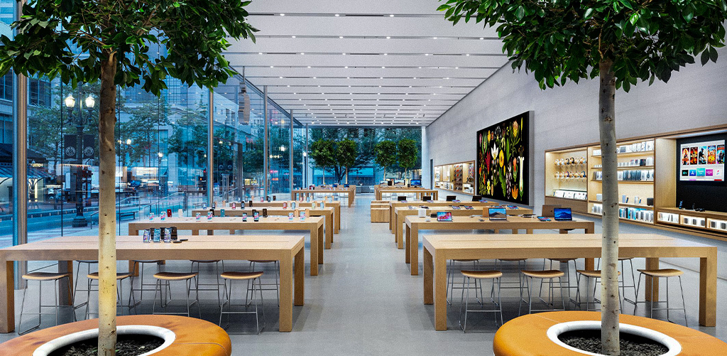 Example: Apple Stores Worldwide — Ever noticed how nothing ever feels too small or too big? That’s strategic. Apple’s designers understand proportion deeply, and that applies to wall art too.