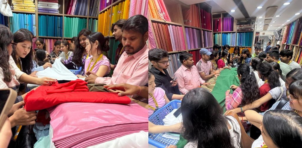 Not on a screen or a sketchpad, but in spaces where textures, colours, and materials come together in countless possibilities and this is where JD Institute students began their learning, right at the source. Students from Fashion Designing course visited Ahuja Vastra Bhandar, one-stop-shop for all fashion fabrics, for a focused session on fabric sourcing. Known for its wide range of textiles, the visit offered students a real-time understanding of how materials are selected, evaluated, and translated into design.