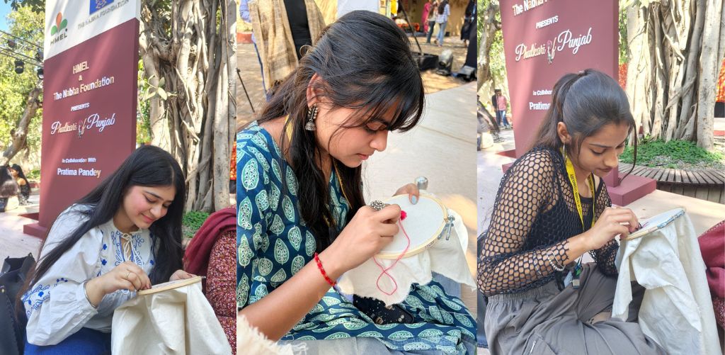 The highlight of the visit was a hands-on Phulkari workshop, conducted by 6–7 skilled artisans associated with the Nabha Foundation.