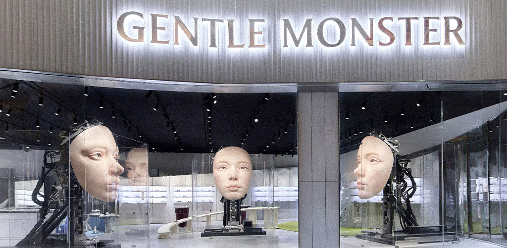 Take Gentle Monster, the avant-garde Korean eyewear brand. Their VM is a performance, rotating heads, floating arms, slow-moving mechanical art. It’s surreal, it’s sculptural, and it makes you feel.