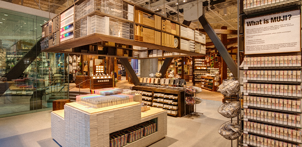 Take Muji, for instance. Their displays feel calm, symmetrical, and soothing. That’s intentional. They use form and balance in VM to reflect their minimalist brand identity.