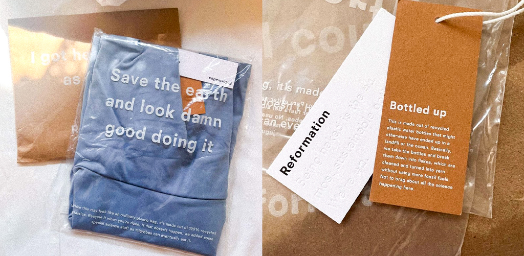 In fact, Reformation’s shipping boxes come with clear messages about sustainability and reuse. That’s not just informative, it’s brand trust in action. If your fashion packaging can look good and do good, you’ve got a win-win.