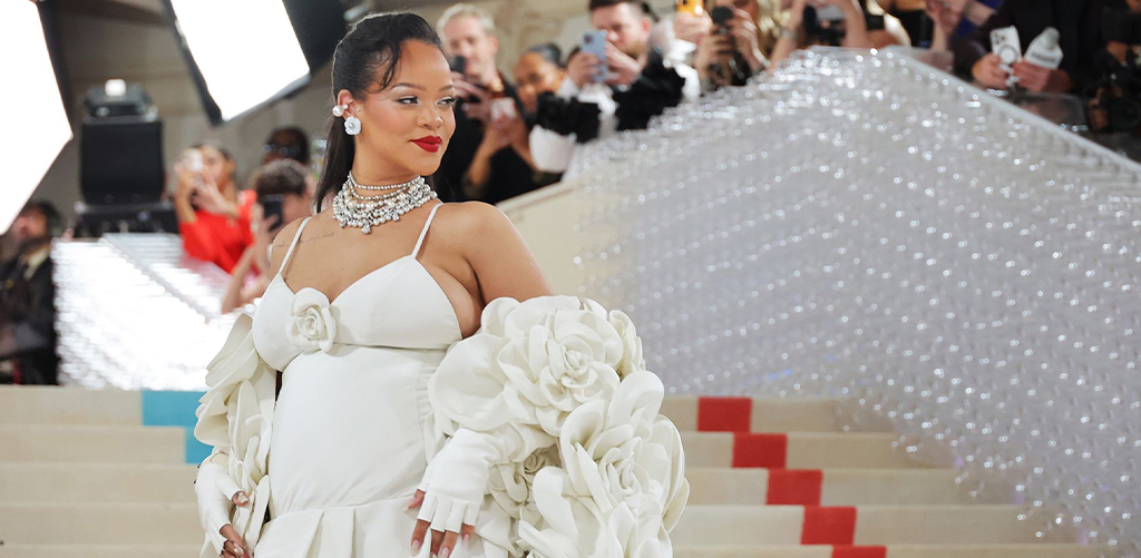 Rihanna’s 2023 Met Gala outfit in white Valentino gave “future bride meets space goddess” vibes. It wasn’t just about the dress—it was the flowers, the sunglasses, the attitude.