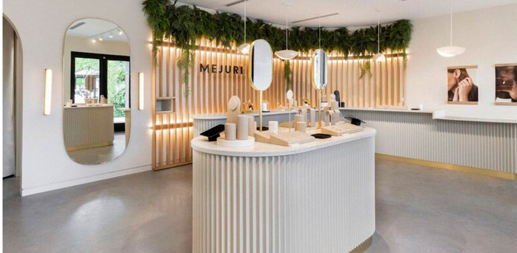 Let’s take Mejuri, a digital-native brand known for its modern, minimalist aesthetic. Even in their physical stores, the atmosphere feels light and breathable, as if there’s a purpose to every angle and every surface.