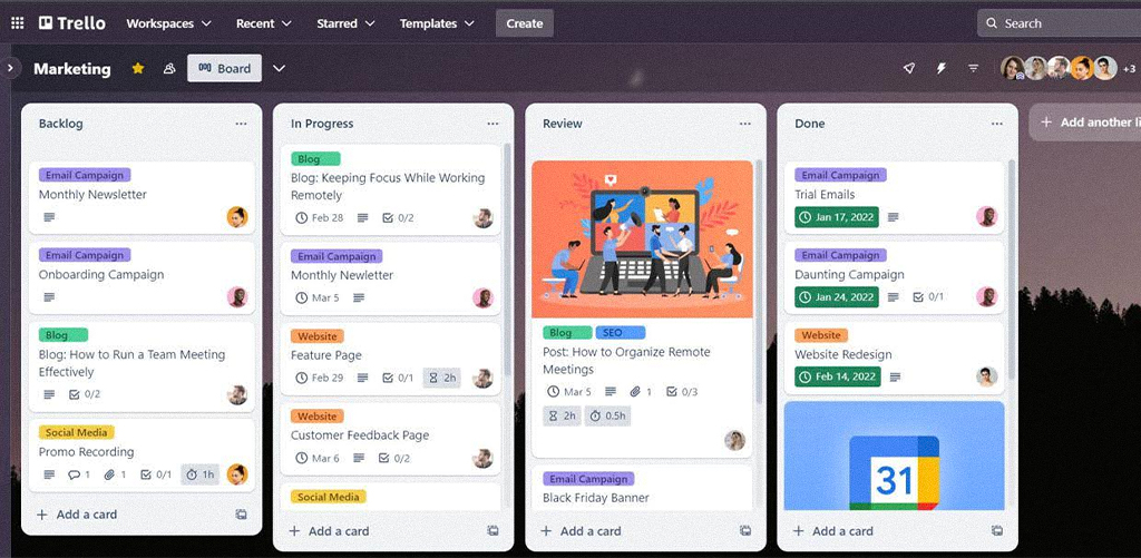 • Trello: Like a digital sticky note board. Great for planning college fests or club events.